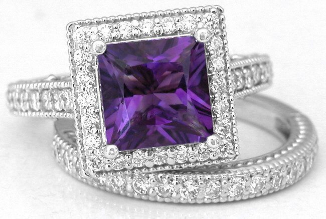 Princess Cut Amethyst Diamond Engagement Ring …
